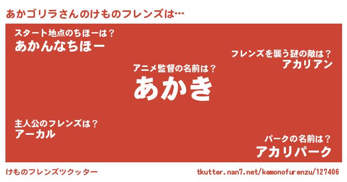 | ヒーロー風カッコイイあだ名 | 『幻影騎士アカ』『最強戦士アカゴリラ』 |