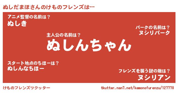 | ピコ太郎風あだ名 | 『ヌコ次郎』『ヌシ三郎』『ヌヌ太郎』 |