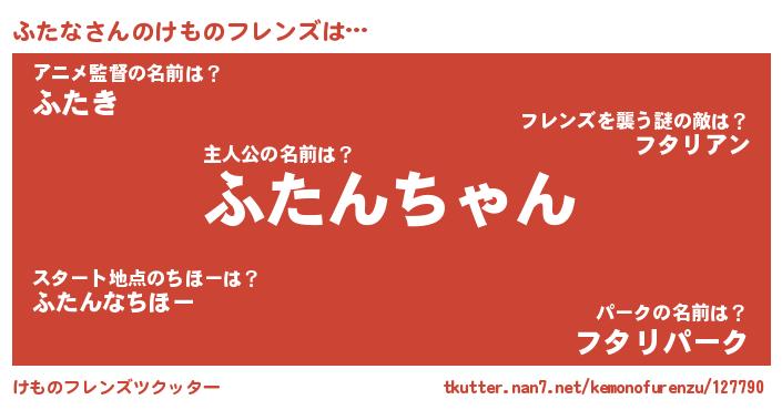 | 意味不明あだ名 | 『ペロリンふたな』『自称ふたな』 |
