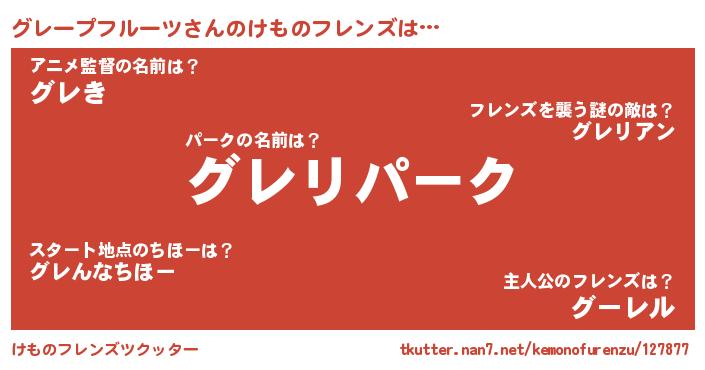 | 男性向けラノベタイトル風あだ名 | 『Re:グレープフルーツから始める異世界生活』 |
