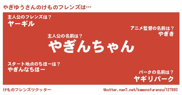 | 意味不明あだ名 | 『めかぶ科やぎゆう属』『自称やぎゆう』 |