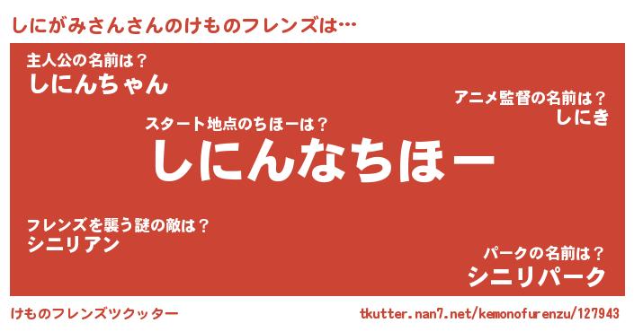 | 2回繰り返すあだ名 | 『ししにに』『しにしに』『あんあん』 |