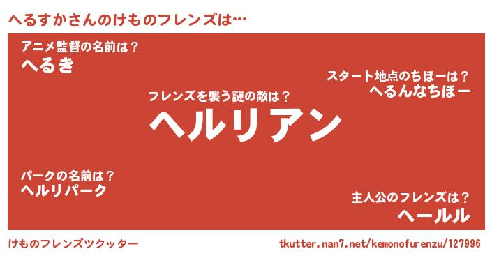 | ヒーロー風カッコイイあだ名 | 『慈愛の使者へるすか』『天弓騎士ヘル』 |