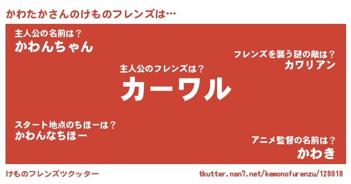 | 男性向けラノベタイトル風あだ名 | 『かわたかという概念が存在しない退屈な世界 』 |