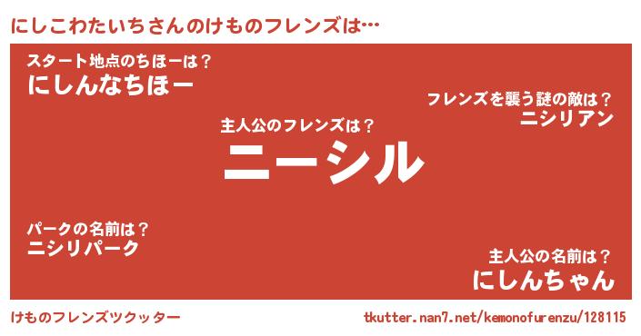 | 意味不明あだ名 | 『永久保存にしこわたいち』 |