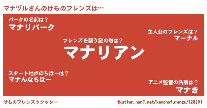 | ヒーロー風カッコイイあだ名 | 『慈愛の使者マナヅル』『幻影騎士マナ』 |