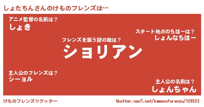 | 2回繰り返すあだ名 | 『ゆらゆら』『ふわふわ』『しょしょ』 |
