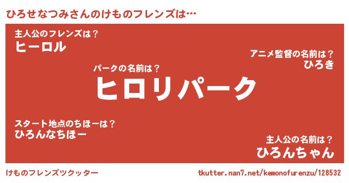 | ヘコむあだ名 | 『ひろせなつみ(遠い目)』『ひろにー』 |