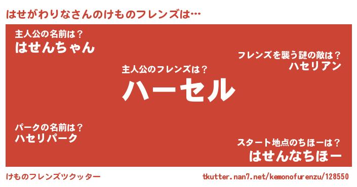 | 意味不明あだ名 | 『永久保存はせがわりな』 |
