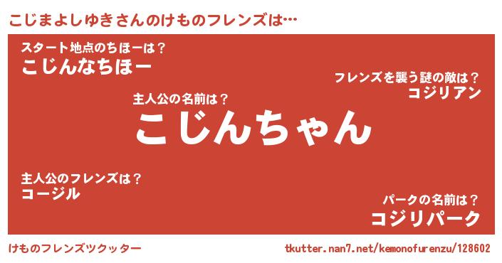 | ファンタジー風あだ名 | 『コジフェル』『ゼコジトゥ』 |