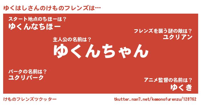 | 料理風あだ名 | 『ゆくはしのカルパッチョ風』 |