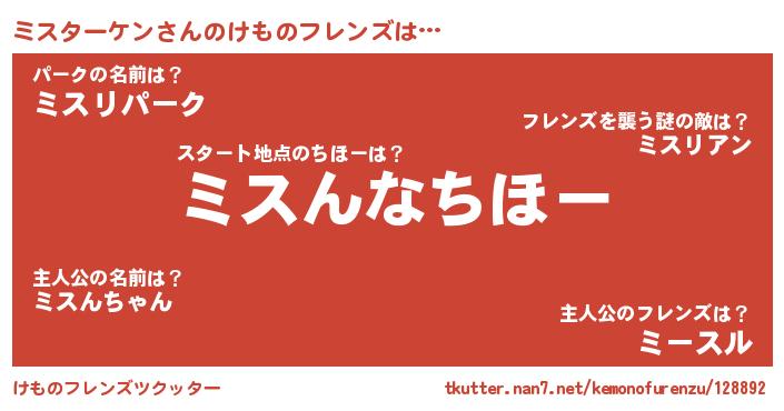 | 2回繰り返すあだ名 | 『ミミスス』『もぞもぞ』『かんかん』 |