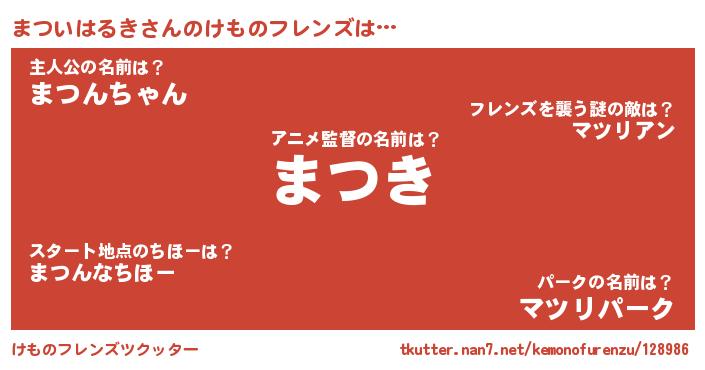 | 肩書あだ名 | 『まついはるき班長』『まついはるき大佐』 |