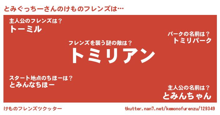 | ファンタジー風あだ名 | 『クイントット』『トミディッシュ』 |