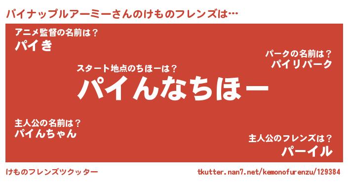 | 男性向けラノベタイトル風あだ名 | 『緋弾のパイナップルアーミー』 |