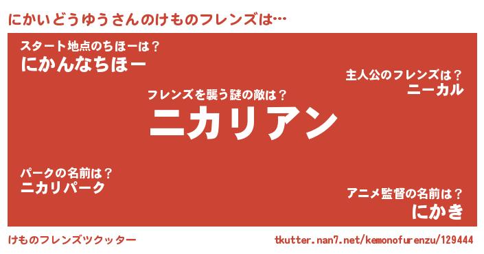 | 可愛いあだ名 | 『にかちゅっちゅ』『にかぷりん』 |