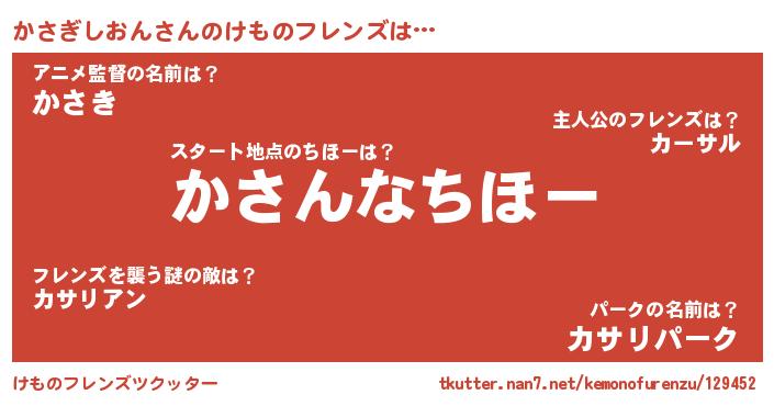 | 2回繰り返すあだ名 | 『んごんご』『とぽとぽ』『かかささ』 |