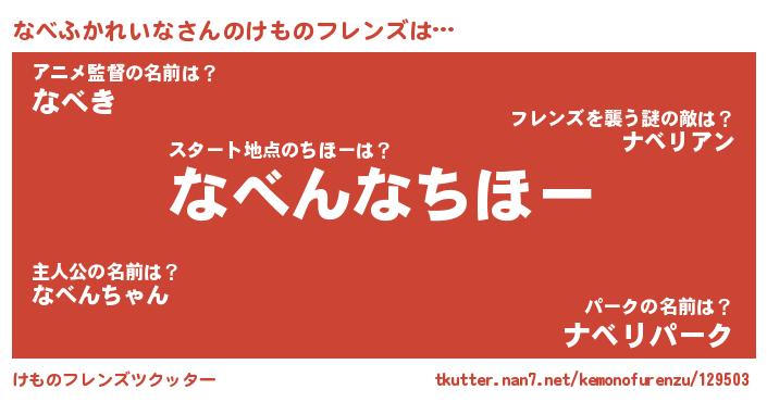 | 料理風あだ名 | 『なべふかれいなのカルパッチョ風』 |
