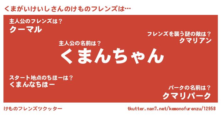 | 2回繰り返すあだ名 | 『くまくま』『かちゃかちゃ』 |