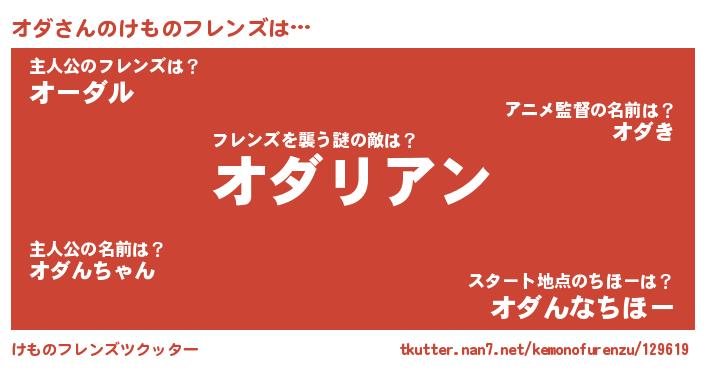| 欧米人風あだ名 | 『アンジェラ・オダ』『ダニエルオダ』 |