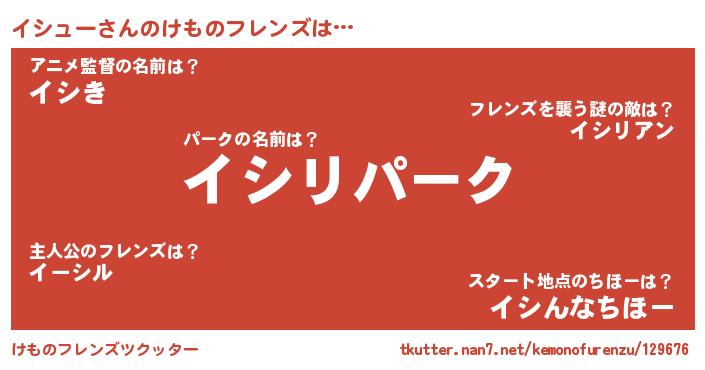 | ポケモン風あだ名 | 『イシセウス』『ヒイシュー』 |