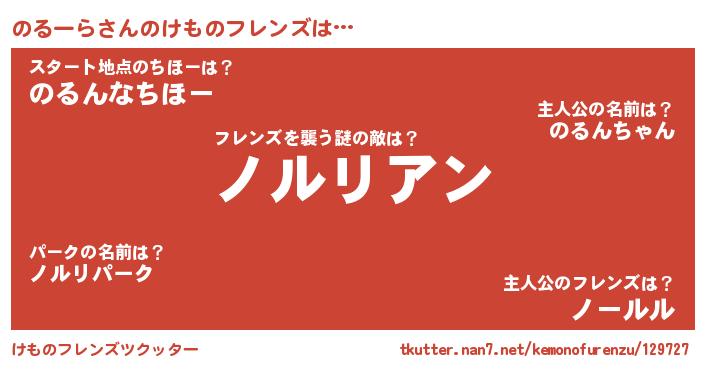 | 料理風あだ名 | 『のるーらごはん』『のるーらのトマト煮』 |