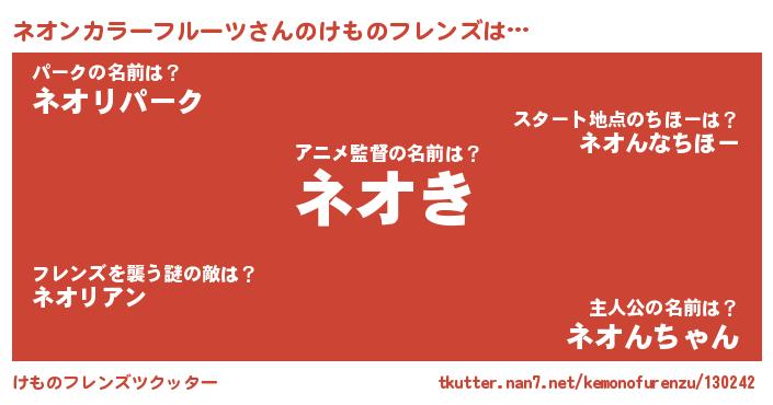 | ポケモン風あだ名 | 『ヒネオンカラーフルーツ』『ネオセウス』 |