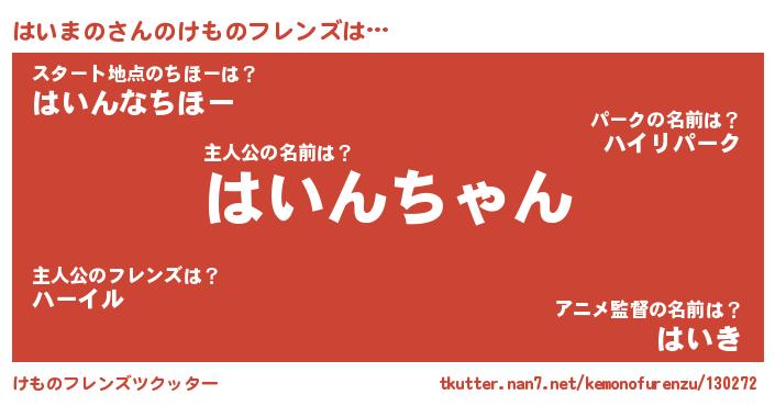 | 2回繰り返すあだ名 | 『はいはい』『ははいい』『いそいそ』 |