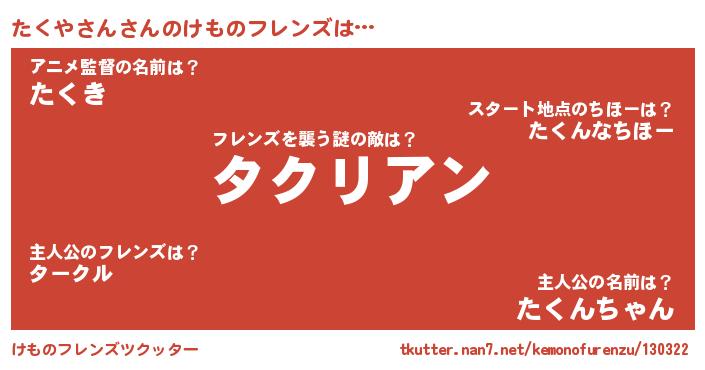 | 男性向けラノベタイトル風あだ名 | 『タクヤサンスレイヤー』 |