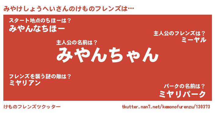 | ファンタジー風あだ名 | 『カークミヤラー』『ミヤフェル』 |