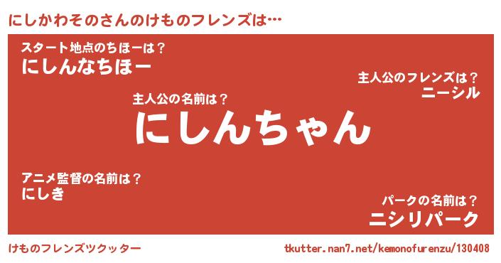 | 2回繰り返すあだ名 | 『にしにし』『ににしし』『みしみし』 |