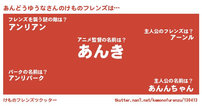 | 意味不明あだ名 | 『とにかく怪しいあんどうゆうな』 |