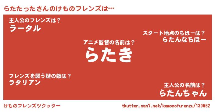 | 萌えアニメ | 主人公(らたたった)のあだ名『らたくん』 |
