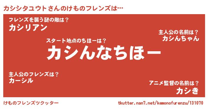 | 男性向けラノベタイトル風あだ名 | 『うちのカシシタユウトが世界を掌握している!』 |