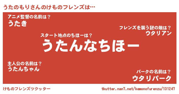 | 意味不明あだ名 | 『住所不定無職うたのもり(41歳)』 |