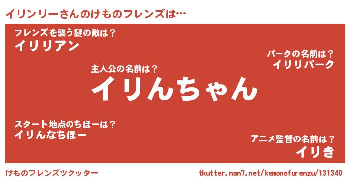 | ヒーロー風カッコイイあだ名 | 『スーパーイリンリー』『銀牙騎士イリ』 |