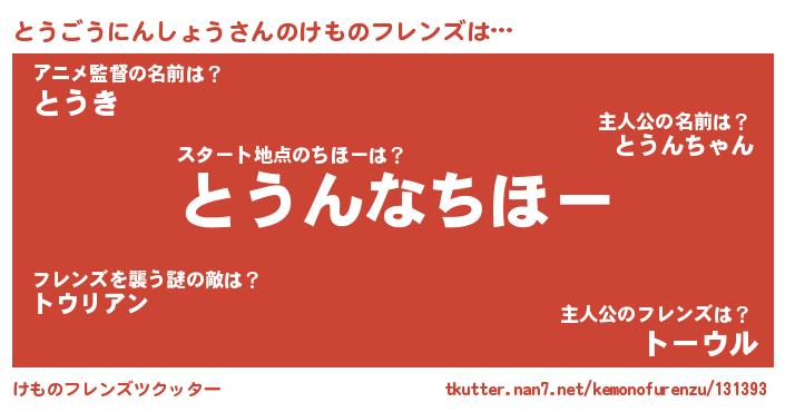 | 2回繰り返すあだ名 | 『ととうう』『いちゃいちゃ』 |