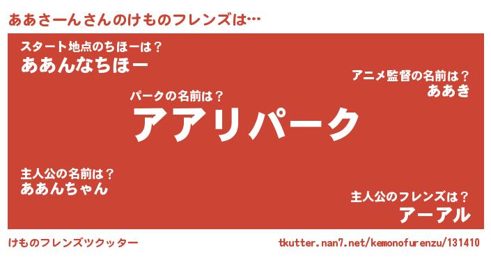 | 2回繰り返すあだ名 | 『もこもこ』『わさわさ』『ああああ』 |