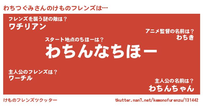 | 肩書あだ名 | 『わちつぐみ国家主席』『わちつぐみ中将』 |