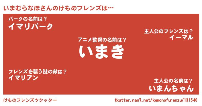 | 意味不明あだ名 | 『とにかく怪しいいまむらなほ』 |