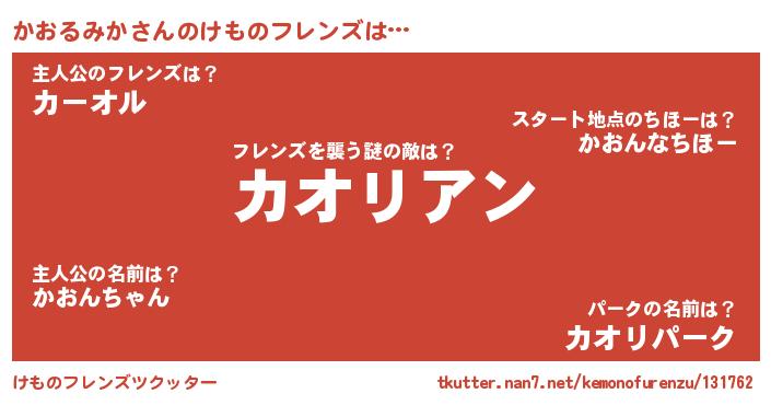 | 男性向けラノベタイトル風あだ名 | 『おまえをオタクにしてやるから、俺をかおるみかにしてくれ! 』 |