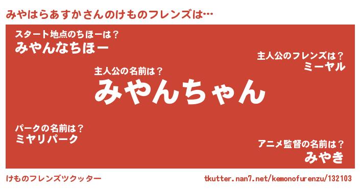 | ポケモン風あだ名 | 『ミヤチュウ』『ミヤハダネ』 |
