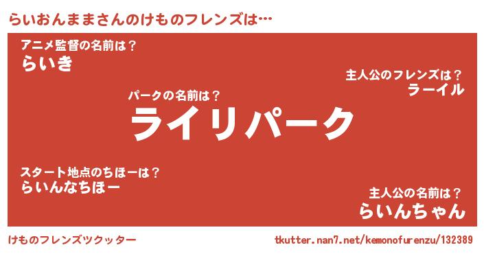 | 意味不明あだ名 | 『自称らいおんまま』 |