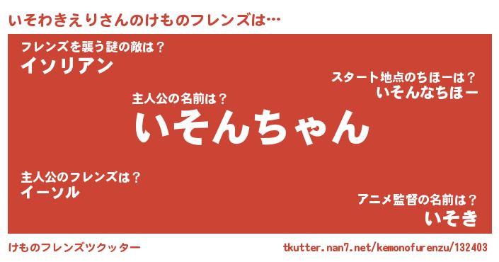 | ヒーロー風カッコイイあだ名 | 『スーパーイソワキエリ』『黄金騎士イソ』 |