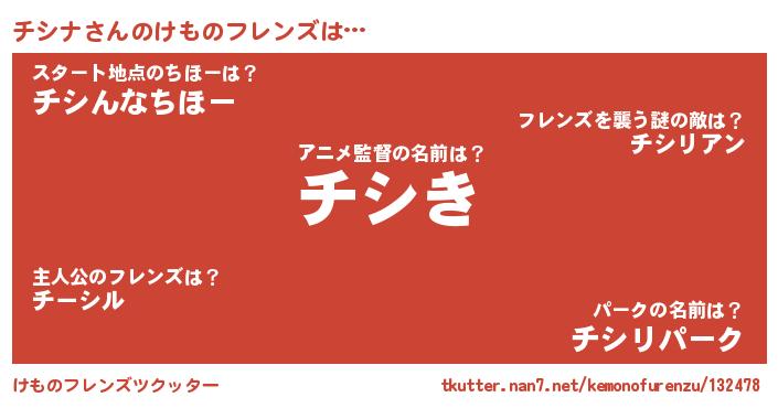 | 意味不明あだ名 | 『とにかく怪しいチシナ』『自称チシナ』 |