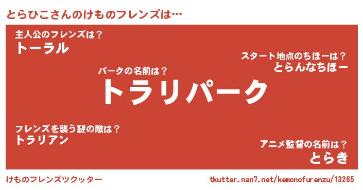 | 男性向けラノベタイトル風あだ名 | 『この素晴らしい世界にとらひこを!』 |
