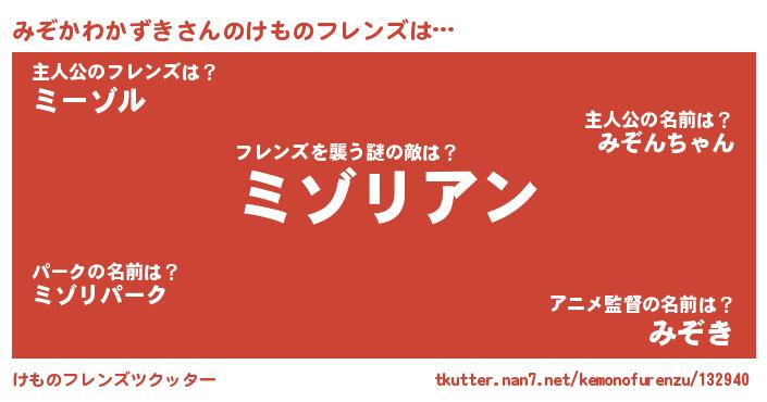 | 男性向けラノベタイトル風あだ名 | 『みぞかわかずきに滅ぼされるだけの簡単なお仕事です』 |