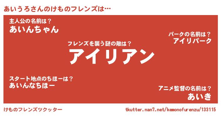 | 肩書あだ名 | 『あいうろ大尉』『あいうろ教授』 |