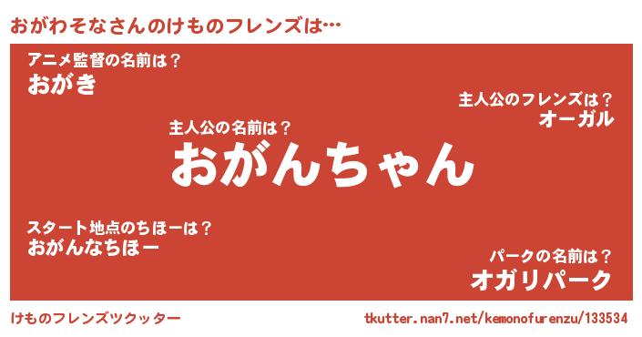 | 2回繰り返すあだ名 | 『おがおが』『いそいそ』『ずしずし』 |