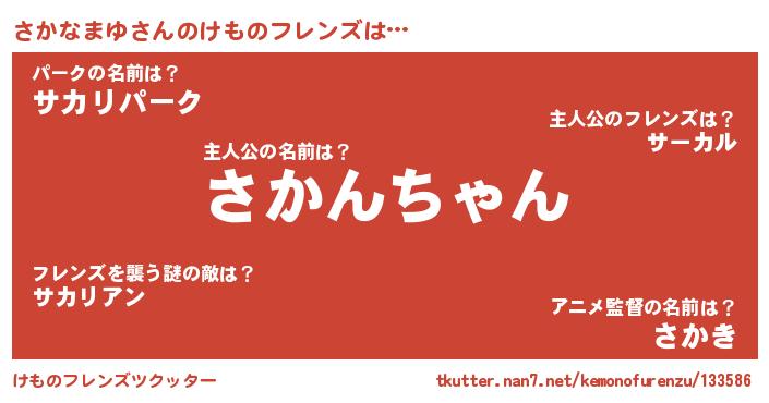 | ヒーロー風カッコイイあだ名 | 『スーパーサカナマユ』『炎刃騎士サカ』 |